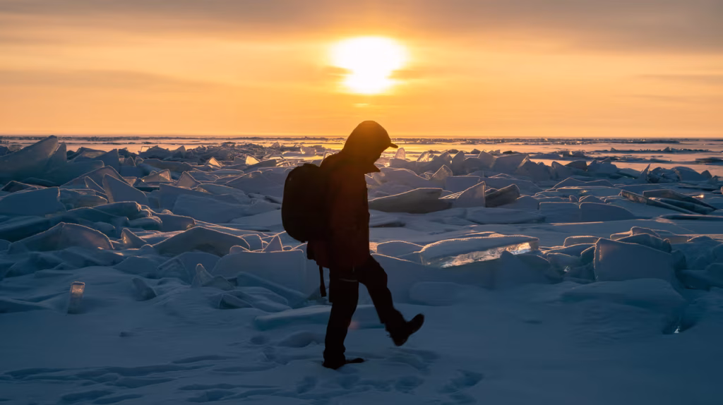 Durante el invierno boreal, las temperaturas extremas provocan que el mar se congele, creando un puente de hielo natural que permite transitar a pie de un país a otro en un lapso aproximado de 20 minutos. Más allá de la proeza física, este cruce implica un fenómeno temporal único: debido a la cercanía con la Línea Internacional de Cambio de Fecha, existe una diferencia de 21 horas entre ambas islas. Esto permite que, al cruzar de la isla estadounidense a la rusa, los viajeros técnicamente se «adelanten» un día en el tiempo.